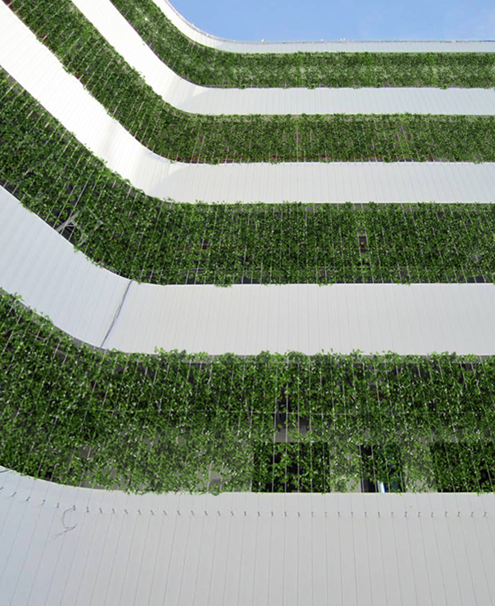 Climbing plants and vines are the alternative materials for Green Building that can be used as walls, partitions, or even facades as requested. Presently, the green