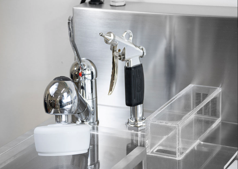 • ก๊อกผสมแบบก้านโยกสำหรับคลินิก พร้อมฝักบัวแบบดึงออกได้